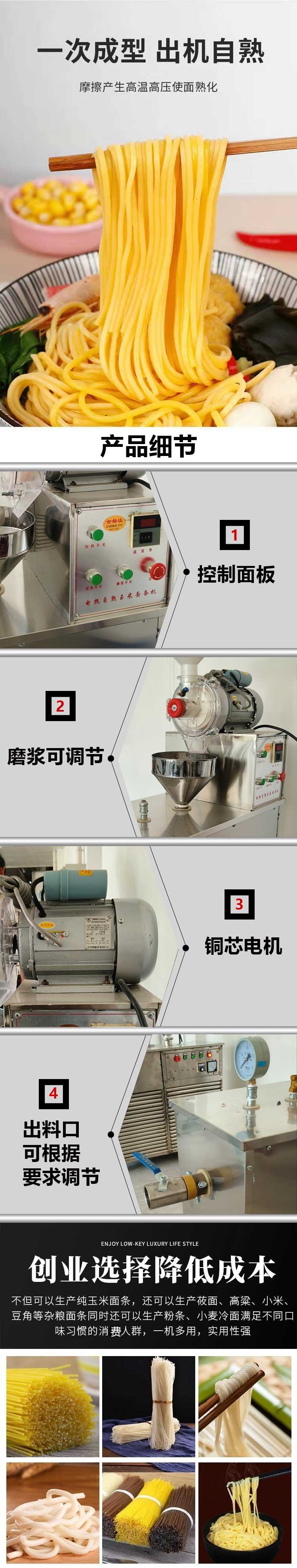 多功能玉米面條機具有設計新穎、結構合理、造型美觀、操作簡單、清理維修方便、接通電源即可生產等特點。該機主要用于生產玉米為原料的內熟面條,還能生產各種面條,麻辣條,牛筋面以及米線等。